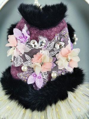 大型犬もOK セミオーダー 夜会の雰囲気 紫のベストとお花のドレス