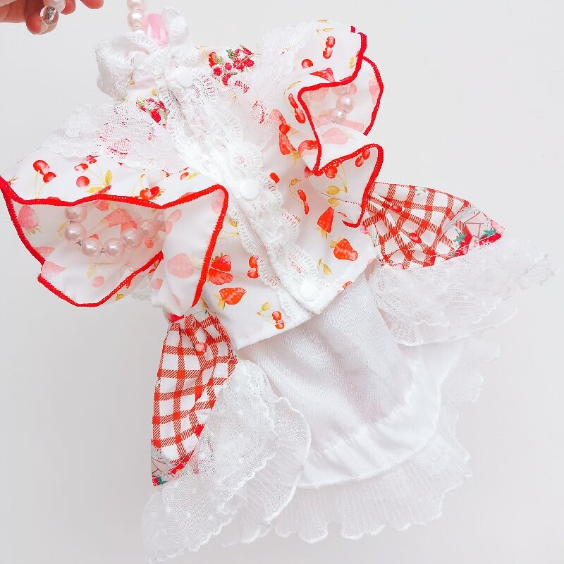 大型犬もOK イチゴ柄の明るいワンピースドレス
