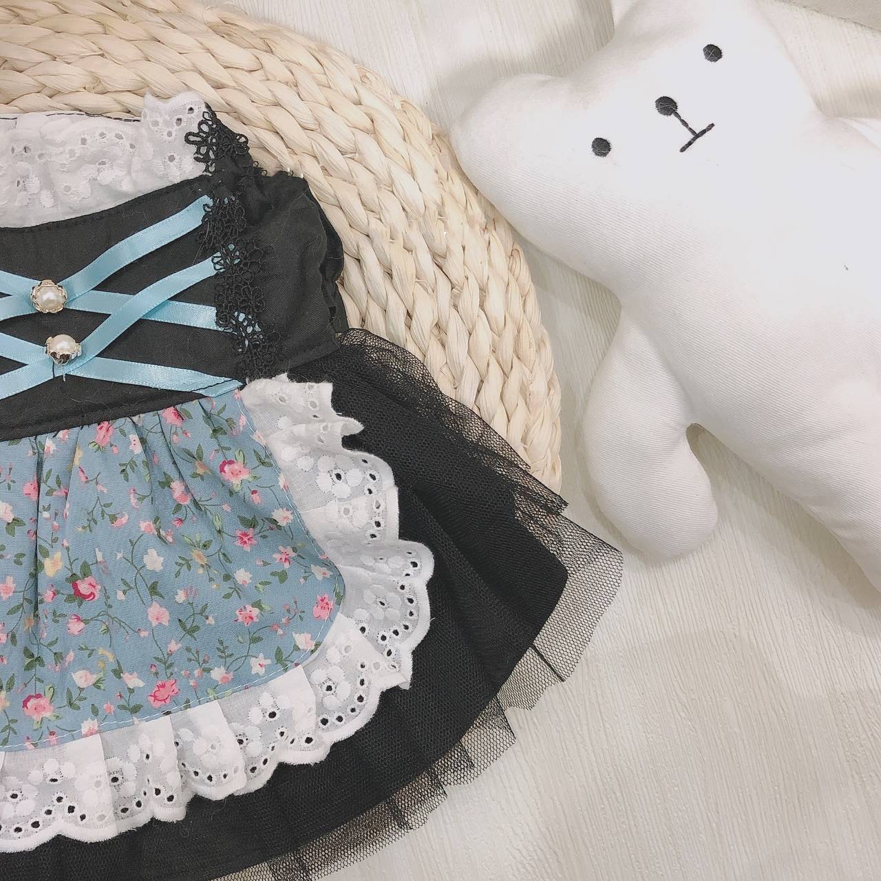 花柄エプロンが可愛いモノトーンワンピース