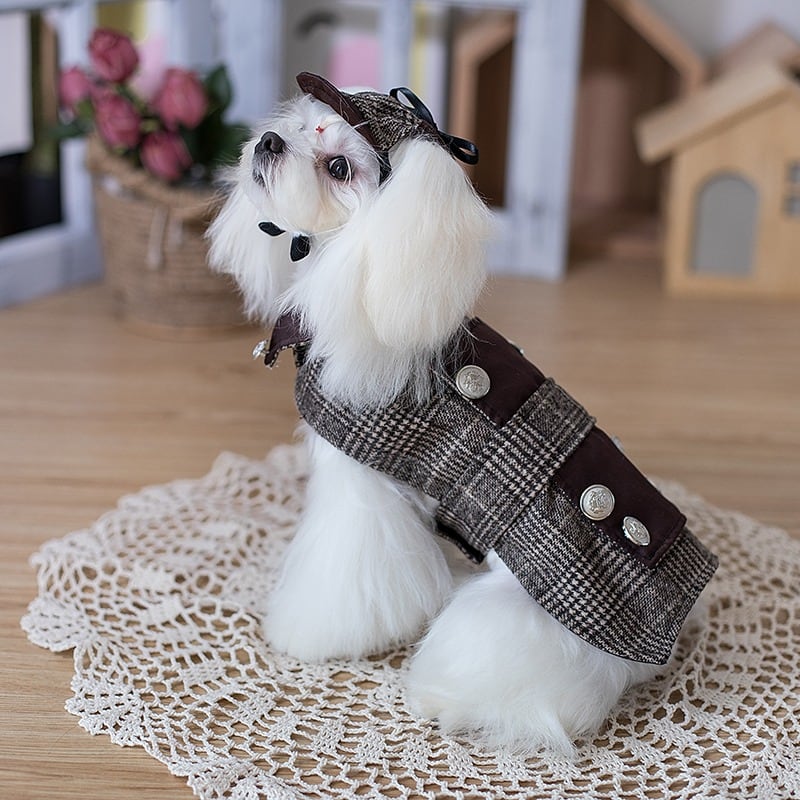 大型犬OK 濃いめブラウンの探偵マントと帽子のセット
