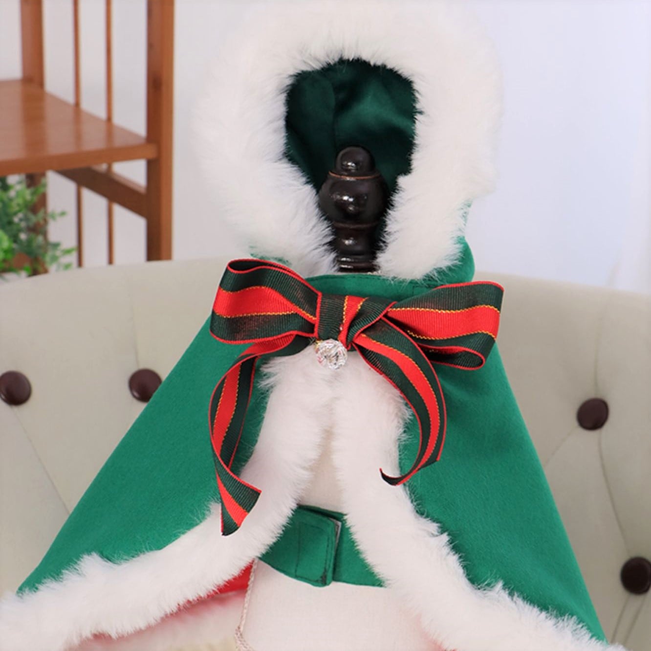 大型犬もOK 2色 クリスマスカラーのフード付きケープ