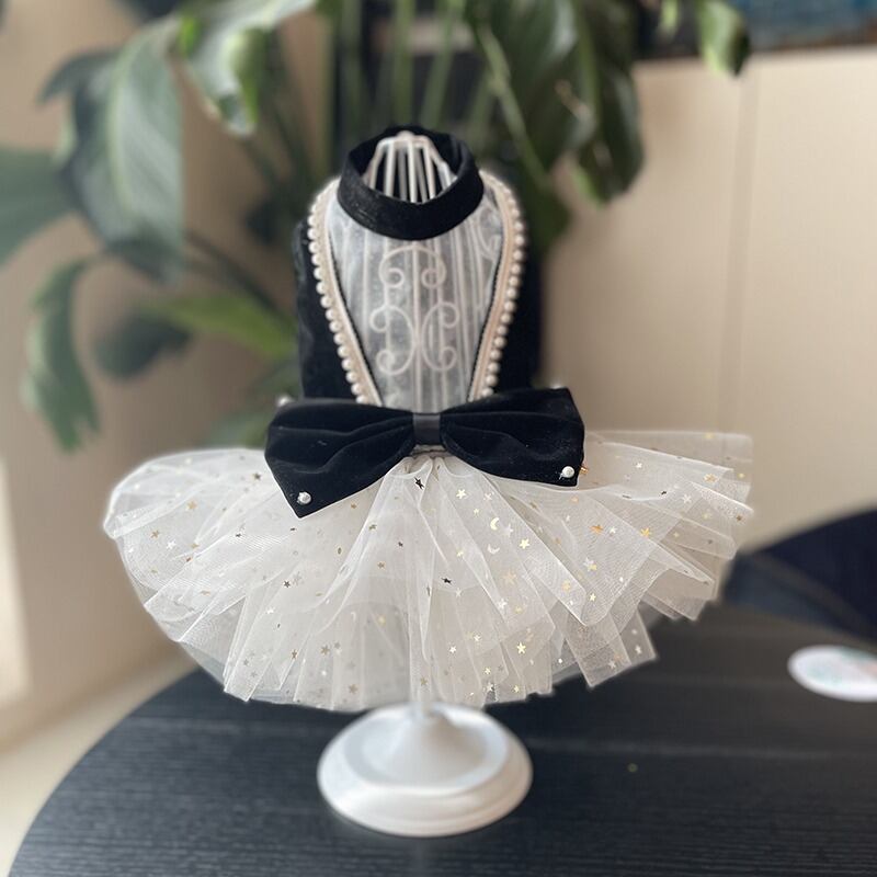 大型犬もOK 背中がシースルーのお嬢様なモノトーンドレス